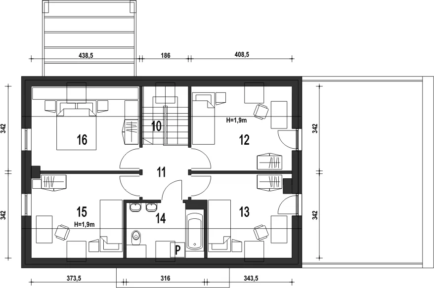 15. Pokój – 9,9 m² (14,8 m²)